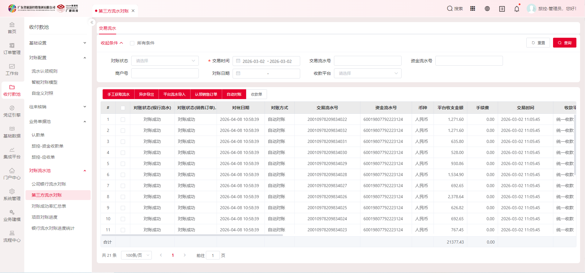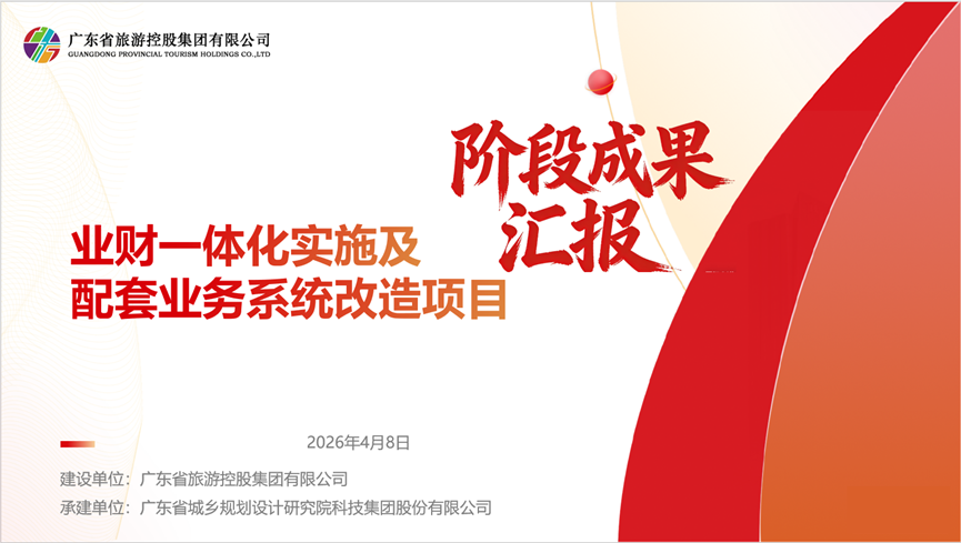 2026年4月7日,业财一体化项目在广东青旅开展业财一体化和数据应用建设一期项目专题研讨会,聚焦广东青旅业财一体化详细设计方案成果展开说明,并深入讨论三大核心业务场景的平台实现逻辑